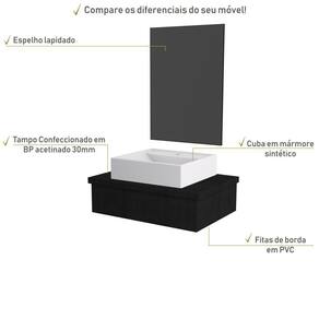 Conjunto Bancada C/cuba Q39 E Espelheira Metrópole 601 Nogal Preto ônix Sobre o ProdutoConjunto Bancada C/Cuba Q39 e Espelheira Metrópole 601 Branco ChessDescrição do Produto:O Conjunto (Bancada + Cuba + Espelheira) Metrópole KTME601 é um produto compacto de design simples e moderno, projetado para pequenos espaços, perfeito para fazer parte da decoração do seu lavabo ou banheiro. Conta com uma cuba de apoio e uma espelheira com espelho lapidado, além do suporte linha Metrópole é uma coleção de móveis modernos e com inúmeras possibilidades de composições, combinando design contemporâneo e muita funcionalidade. Diversas possibilidades de cores e modelos de cubas formam uma solução perfeita para as mais opções de decoração e projetos em ambientes de banheiro. É você quem decide!!!Itens Inclusos:1 Conjunto Bancada C/Cuba e EspelheiraDimensões dos Produtos:Bancada: 60 x 43 x 19 cmEspelheira: 43 x 1,8 x 60 cmCuba 40 x 37,5 x 10 cmInformações Logísticas (Comp. X Prof. X Alt.) 63 x 47 x 26 cm - Peso: 17,84 KgPeso Total: 17,84 KgObservações:Não acompanha acessórios decorativos. Imagens meramente ilustrativas.Informações Técnicas / Características:- Cor do Produto: Branco Chess- Cor do Predominante: Branco- Marca: Compace- Modelo: KTME601- Linha: Metrópole- Material: Mdp - Acabamento: Perffect Acetinado- Escala de Brilho: Fosco- Fita de Borda: Pvc - Possui Gavetas: Não - Material do Puxador: Alumínio - Possui Pés: Não, suspenso - Possui Espelho: Sim - Acompanha Cuba / Lavatório: Sim, de Mármore Sintético- Furação para Cuba / Lavatório: Não- Tipo da Cuba: Apoio- Cor da Cuba: Branca- Suporta Até (kg): 10 kg - Peso Lí.: 16,94Kg- Recomendações de Uso, Manutenção e Limpeza: Para a limpeza, utilize flanela seca ou pano macio levemente umedecido em água. Utilize um pano seco em seguida. Evite com produtos químicos (solventes, thinner, acetona, etc) e não utilize nenhum tipo de esponja de aço.- Necessita de Montagem: Sim / Acompanha Manual de Montagem- Complexidade da Montagem: Média: pode ser montado por mais de uma pessoa e/ou necessite de maior conhecimento para montagem.- Garantia: 6 meses- Outras Características: Montagem ível, o suporte toalheiro pode ser montado em qualquer um dos lados. Material: Mdp | Acabamento: Perffect Acetinado | Escala de Brilho: Fosco | Fita de Borda: Pvc | Tipo de Produto: Bancada para Banheiro | Fabricante: Compace | Comprimento: 60 | Limite de unidades por venda: É possível comprar até 1 unidade por venda. | Largura: 42 | Quantidade máxima de pedido: 1 | Altura: 19 | Profundidade: 42 | Preço tabelado: | Cor: Multicolorido | Certificação de teste externa: Não Aplicável | Baterias são necessárias?: false | Palavras-chave de Pesquisa: Não aplicável | Fonte de energia: Não aplicável | Peso do item: | da peça: | Principais Características do Produto 2: | Componentes incluídos: | Principais Características do Produto 0: | Dimensões do item P x L x A: | Principais Características do Produto 1: | Is Fragile: | Exige montagem: | Quantidade de itens: | do modelo: | de caixas: Cor: Preto Ônix