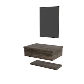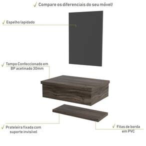 Conjunto Bancada, Prateleira E Espelheira Ktme607 Carvalho Carvalho Dark