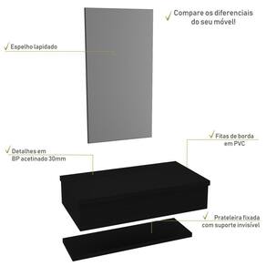 Sobre o ProdutoConjunto Bancada, Prateleira e Espelheira KTME807 Branco ChessDescrição do Produto:O Conjunto (Bancada + Espelheira + Prateleira) Metrópole KTME807 é um produto compacto de design simples e moderno, projetado para pequenos espaços, perfeito para fazer parte da decoração do seu lavabo ou banheiro. Conta uma espelheira e prateleira com pinos invisíveis, além do suporte linha Metrópole é uma coleção de móveis modernos e com inúmeras possibilidades de composições, combinando design contemporâneo e muita funcionalidade. Diversas possibilidades de cores e modelos de cubas formam uma solução perfeita para as mais opções de decoração e projetos em ambientes de banheiro. É você quem decide!!!Itens Inclusos:1 Conjunto Bancada, Prateleira e EspelheiraDimensões dos Produtos:Bancada: 80 x 43 x 19 cmEspelheira: 43 x 1,8 x 80 cm: Informações Logísticas (Comp. X Prof. X Alt.) 83 x 47 x 26 cm - Peso: 19,11 KgPeso Total: 19,11 KgObservações:Não acompanha acessórios decorativos. Imagens meramente ilustrativas.Informações Técnicas / Características:- Cor do Produto: Branco Chess- Cor do Predominante: Branco- Marca: Compace- Modelo: KTME807- Linha: Metrópole- Material: Mdp - Acabamento: Perffect Acetinado- Escala de Brilho: Fosco- Fita de Borda: Pvc - Possui Gavetas: Não - Material do Puxador: Alumínio- Possui Prateleiras: 1- Peso Máximo por Prateleira: 02 kg- Possui Pés: Não, suspenso - Possui Espelho: Sim - Acompanha Cuba / Lavatório: Não- Furação para Cuba / Lavatório: Não - Suporta Até (kg): 12 kg - Peso Lí.: 18,04Kg- Recomendações de Uso, Manutenção e Limpeza: Para a limpeza, utilize flanela seca ou pano macio levemente umedecido em água. Utilize um pano seco em seguida. Evite com produtos químicos (solventes, thinner, acetona, etc) e não utilize nenhum tipo de esponja de aço.- Necessita de Montagem: Sim / Acompanha Manual de Montagem- Complexidade da Montagem: Média: pode ser montado por mais de uma pessoa e/ou necessite de maior conhecimento para montagem.- Garantia: 6 meses- Outras Características: Montagem ível, o suporte toalheiro pode ser montado em qualquer um dos lados. Material: Mdp | Acabamento: Perffect Acetinado | Escala de Brilho: Fosco | Fita de Borda: Pvc | Tipo de Produto: Bancada para Banheiro | Fabricante: Compace | Comprimento: 80 | Largura: 42 | Limite de unidades por venda: É possível comprar até 1 unidade por venda. | Quantidade máxima de pedido: 1 | Altura: 19 | Profundidade: 42 | Preço tabelado: | Cor: Multicolorido | Certificação de teste externa: Não Aplicável | Baterias são necessárias?: false | Palavras-chave de Pesquisa: Não aplicável | Fonte de energia: Não aplicável | Peso do item: | Principais Características do Produto 1: | Principais Características do Produto 0: | Dimensões do item P x L x A: | Is Fragile: | Exige montagem: | Componentes incluídos: | Principais Características do Produto 2: | da peça: | de caixas: | Quantidade de itens: | do modelo: Cor: Preto Ônix