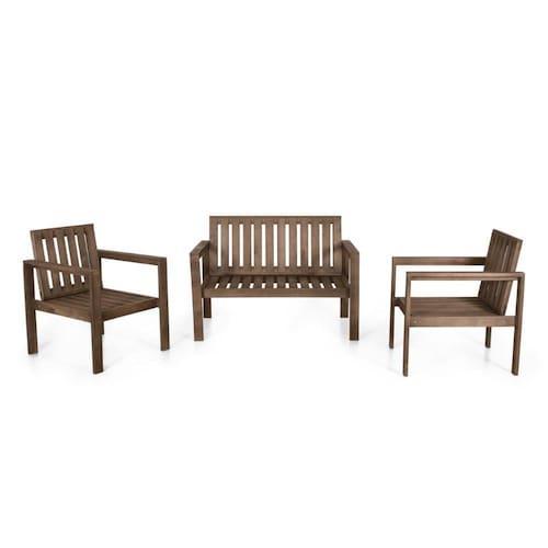 Linhas retas e simétricas fazem do Conjunto de Banco Orquídea 2 Lugares e Poltronas, lindas peças que vão deixar sua varanda ou piscina ainda mais especial. Você pode aproveitar seu tempo sentado à sombra ou ao sol no produto com toda a autenticidade e rusticidade da madeira. É construído em madeira maciça de eucalipto, e o acabamento rústico é feito com STAIN na tonalidade Nogueira. Esse tipo de acabamento não forma filme, permitindo que a madeira trabalhe de acordo com as condições climáticas, além de possuir proteção UV e hidrorepelente. Conteúdo: 1 Banco 2 Lugares e 2 Poltronas. Acabamento da Estrutura: Stain Altura do assento até o chão: 36 Altura do Encosto: 44 Altura Regulável: Não Ambiente Principal: Jardim e Varanda Complexidade da Montagem: Baixa: pode ser montado por uma pessoa sozinha Cor: Nogueira Cor do Produto: Nogueira Escala de Brilho: Fosco Itens Inclusos: 1 banco 2 lugares e 2 poltronas Linha ou Coleção: Orquídea Manual de Especificação Técnica: https://cdn2.madeiramadeira.com.br/atributo/viva-ligna/1400376-cuidados-e-manutencao-moveis.pdf Manual de Montagem e Instalação: https://cdn2.madeiramadeira.com.br/atributo/viva-ligna/1400724-poltrona-orquidea-ref-6001.pdf Material da Estrutura: Madeira Maciça Material do Assento: Madeira Maciça Material do Encosto: Madeira Maciça Material Principal: Madeira Maciça Necessita Montagem: Sim Origem do Produto: Nacional Peso: 26 Possui Almofada no Assento: Não Possui Apoio para Braços: Sim Recomendações de Uso, Manutenção e Limpeza: Na limpeza não utilizar produtos químicos e abrasivos, usar apenas um pano umedecido, para garantir a maior durabilidade do móvel. Por ser um produto produzido 100% de madeira, pode possuir nós, reveses e diferença na tonalidade de cor das peças, isso é normal e atesta a autenticidade da madeira marroml. Como outras madeiras, o eucalipto também reage às condições de uso e clima, e por isso necessita de alguns cuidados para sua conservação. Alterações bruscas de clima ou longas exposições à condições severas de calor, frio, clima seco ou chuvas podem ocasionar desequilíbrios no comportamento da madeira, ocasionando pequenas fissuras, estas fissuras são normais e tendem diminuir com o restabelecimento das condições normais do clima. Para amenizá-las, sempre que possível recolha seu móvel a áreas cobertas ou fechadas. Caso isso não seja possível, é de extrema importância que a reaplicação do óleo Stain seja feita periodicamente conforme necessidade. Essa reaplicação é muito simples, aliada ao reaperto periódi Resistente à Chuva: Sim Sistema de Montagem: Parafuso Suporta Até (kg): 120 Tipo de Encosto: Fixo Tipo de Madeira Maciça: Eucalipto Marca: Viva Ligna