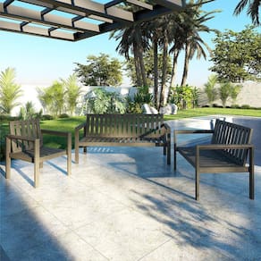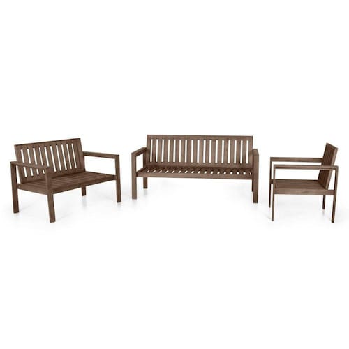 Linhas retas e simétricas fazem do Conjunto Orquídea Bancos 2, 3 Lugares e Poltrona Ref.7003, lindas peças que vão deixar sua varanda ou piscina ainda mais especial. Você pode aproveitar seu tempo sentado à sombra ou ao sol no produto com toda a autenticidade e rusticidade da madeira. É construído em madeira maciça de eucalipto, e o acabamento rústico é feito com STAIN na tonalidade Nogueira. Esse tipo de acabamento não forma filme, permitindo que a madeira trabalhe de acordo com as condições climáticas, além de possuir proteção UV e hidrorepelente. Conteúdo: 1 Banco 2 Lugares, 1 Banco 3 Lugares e 1 Poltrona. Acabamento da Estrutura: Stain Altura do assento até o chão: 36 Altura do Encosto: 44 Altura Regulável: Não Ambiente Principal: Jardim e Varanda Complexidade da Montagem: Baixa: pode ser montado por uma pessoa sozinha Cor: Nogueira Cor do Produto: Nogueira Escala de Brilho: Fosco Itens Inclusos: 1 banco 2 lugares, 1 banco 3 lugares e 1 poltrona Linha ou Coleção: Orquídea Manual de Especificação Técnica: https://cdn2.madeiramadeira.com.br/atributo/viva-ligna/1400376-cuidados-e-manutencao-moveis.pdf Manual de Montagem e Instalação: https://cdn2.madeiramadeira.com.br/atributo/viva-ligna/1411209-poltrona-orquidea-ref-6001.pdf Material da Estrutura: Madeira Maciça Material do Assento: Madeira Maciça Material do Encosto: Madeira Maciça Material Principal: Madeira Maciça Necessita Montagem: Sim Origem do Produto: Nacional Peso: 32 Possui Almofada no Assento: Não Possui Apoio para Braços: Sim Recomendações de Uso, Manutenção e Limpeza: Na limpeza não utilizar produtos químicos e abrasivos, usar apenas um pano umedecido, para garantir a maior durabilidade do móvel. Por ser um produto produzido 100% de madeira, pode possuir nós, reveses e diferença na tonalidade de cor das peças, isso é normal e atesta a autenticidade da madeira marroml. Como outras madeiras, o eucalipto também reage às condições de uso e clima, e por isso necessita de alguns cuidados para sua conservação. Alterações bruscas de clima ou longas exposições à condições severas de calor, frio, clima seco ou chuvas podem ocasionar desequilíbrios no comportamento da madeira, ocasionando pequenas fissuras, estas fissuras são normais e tendem diminuir com o restabelecimento das condições normais do clima. Para amenizá-las, sempre que possível recolha seu móvel a áreas cobertas ou fechadas. Caso isso não seja possível, é de extrema importância que a reaplicação do óleo Stain seja feita periodicamente conforme necessidade. Essa reaplicação é muito simples, aliada ao reaperto periódi Resistente à Chuva: Sim Sistema de Montagem: Parafuso Suporta Até (kg): 120 Tipo de Encosto: Fixo Tipo de Madeira Maciça: Eucalipto Marca: Viva Ligna