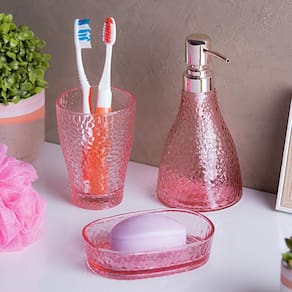 - Dimensões: Porta Sabonete Líquido 9,2X13,6cm 210ml, Saboneteira 13,5X3,4cm Porta escovas 8,3X11,6cm