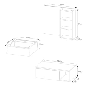 O Kit para Banheiro é a escolha ideal para dar um toque de elegância e organização ao seu espaço. Com um design contemporâneo, ele transforma o ambiente em um local mais convidativo e prático. Fabricado com materiais de alta qualidade, o kit oferece durabilidade e um visual sofisticado, tornando seu banheiro ainda mais funcional e bonito. CARACTERÍSTICAS TÉCNICAS: - Produzida em MDP de 15 mm - Acabamento UV na cor Amendôa - Acompanha Espelho - Cuba em Mármore Sintético - Porta Basculante com Dobradiça e Articulador - Balcão Suspenso - Puxador tipo Cava *Kit Composto por Gabinete Suspenso (3601), Espelheira (3609) e Cuba (3630) INFORMAÇÕES TÉCNICAS: 3601: Alt. 26,5 x Larg. 80 x Prof. 38,7 cm P. 10,8 kg 3609: Alt. 54 cm x Larg. 60 cm x Prof. 15,6 x P. 7,65 kg 3630: Alt. 11,5 x Larg. 35 x Prof. 34 cm P. 5,5 kg INFORMAÇÕES ADICIONAIS: - ATENÇÃO: Não trabalhamos e não nos responsabilizamos pela montagem do móvel. Antes da montagem conferir se o produto está de acordo com o que comprou, produto montado e danificado pela montagem não será aceito troca. Montagem e instalação por conta do comprador. - As imagens ambientadas são meramente ilustrativas e podem apresentar itens que não compõe o produto. As cores do produto podem variar de acordo com o monitor, a iluminação do ambiente ou sua percepção visual. - Limpeza: Deve ser feita com pano macio e seco ou levemente umedecido com água e sabão neutro. Não devem ser utilizados abrasivos como palha de aço e objetos cortantes. -Garantia para defeitos de fabricação conforme Código de Defesa do Consumidor.