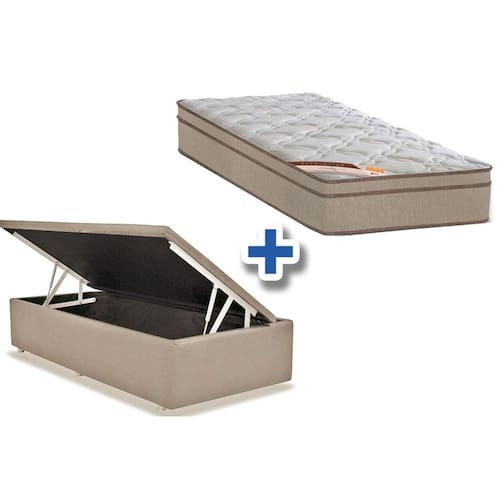 Conjunto Cama Box Baú - Colchão Castor de Molas Bonnel Revolution + Cama Box Baú Nobuck Bege - Solteiro 0,88x1,88