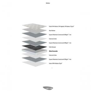 Sua estrutura conta com camadas de espuma de alta densidade, o que garante durabilidade ao seu produto. O sistema de molejo de Molas Ensacadas proporciona grande amortecimento ao corpo. Por serem ensacadas individualmente, resultam no benefício de quando o lado do colchão recebe o peso do corpo, o outro lado não recebe interferência, deixando sua noite muito mais tranquila.