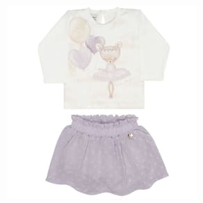 Conjunto Bebê Blusa Manga Longa Off White + Short Saia Bailarina 2Pçs Lilás - Sonho Mágico: Charme e Conforto para a sua Princesa