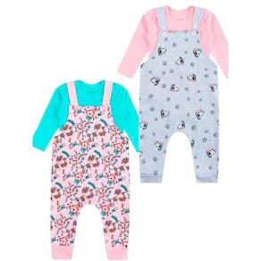 Kit com 2 jardineiras e 2 bodies Jardineira em moletom felpudo, com botões extras body manga longa em suedine Jardineira com botões extras, estampada. Moletom com parte interna felpuda Body manga longa em suedine
