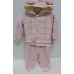 Características do Produto: - Jaqueta dupla super macia, quente e confortável. Na parte externa em tecido com estampa quadriculada que deixa a peça ainda mais encantadora. Mangas em pelo. Possui punhos e barra ribanados. Capuz com orelhinhas em alto relevo. Forrado em microsoft, que vai manter seu pequeno super protegido do frio e no maior conforto. Abertura frontal por botões de pressão. - Calça em pelo, como a manga da jaqueta, também super quentinha e confortável. Forrada em tecido super confortável. Cós elástico que facilita na vestimenta. Simplesmente um encanto.