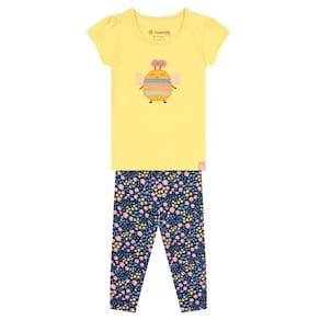 Linha: Alto Verão 2024 Faixa etária : Bebê Composição: Blusa 100% Algodão / Calça Legging 96%Algodão 4%Elastano Tecido: Malha Cuidados: Não usar alvejante a base de cloro Tipo de manga: Curta Tipo de Roupa: Conjunto É esportiva: Não Tipo de gola: Redondo Tipo de cintura: Média