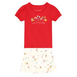 Este conjunto de bebê feminino combina charme e conforto de forma encantadora. A blusa em meia malha lisa apresenta uma estampa bordada de abelhinha, com mangas curtas e elástico na barra franzida, além de um decote redondo que adiciona um toque delicado. O shorts saia, com estampa rotativa e elástico na cintura, completa o look com um visual alegre e prático. Ideal para deixar as pequenas ainda mais fofas e confortáveis no dia a dia! Tradução: Fofo e adorável.