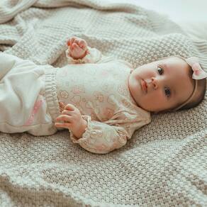 Conjunto Bebê Body longo + calça moletinho Memories 2Pçs Bege / Natural - Sonho Mágico: Charme e Conforto para o seu Príncipe