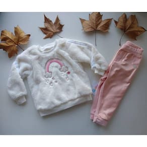 - Calça em plush com parte frontal em cirrê, cintura elasticada para maior facilidade de adaptação à criança.