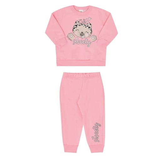 Conjuntinho super fofo pensado especialmente pra sua gatinha, um Blusão na cor Rosa confeccionado em Moletom com estampa de oncinha e uma calça lisa quentinha confeccionada em Moleton na cor rosa. Muita fofura para a sua princesa!