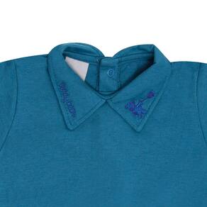 Um momento especial, merece um look especial para o bebê! Conjunto composto por uma jardineira em tecido eco na cor azul com etiqueta termocolante próximo a perninha e detalhe de quatro botões na parte frontal do peito deixando o look charmoso e fashionista. Acompanha uma camiseta meia malha na cor azul cobalto e gola polo com bordado. Uma fofura!