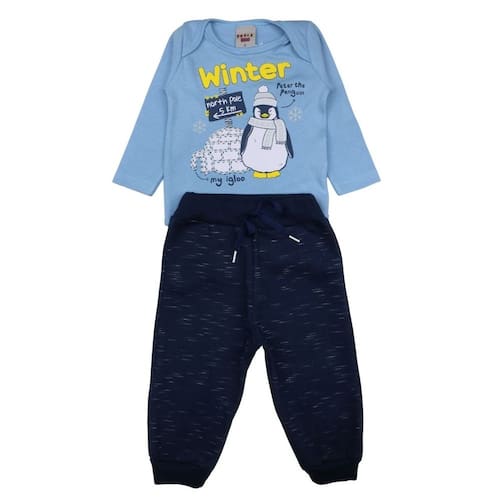 Conjunto Bebê Menino Azul Body Moletom Meia Estação - Conforto e Estilo Leve para Todas as Aventuras da Meia Estação