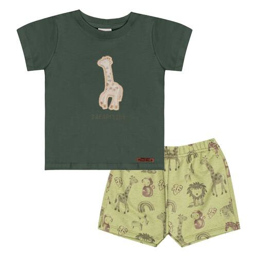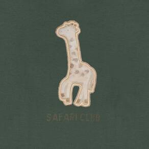 Conjunto baby girafa! Invista para seu baby conforto e qualidade que ele merece para brincar e movimentar-se com segurança e fofura, o conjunto possuí a camiseta em meia malha na cor militar com estampa de girafa em aplique termocolante e escrita Safari Club e a bermuda em moletom linho sublimado folha com estampa de animais e elastano na cintura para melhor movimento e segurança do bebê.