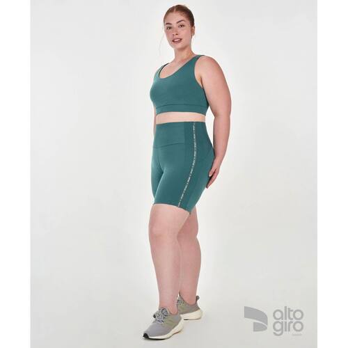 Ficha Técnica Marca: Alto Giro Composição: Poliamida e elastano Itens inclusos: 1 Bermuda + 1 Top Alto Giro Cor: Verde Tamanho: M+ (50/52) – Linha Plus Size Diferenciais: Modelagem com cós alto, tecido com compressão e elasticidade, zero transparência, top estruturado com alta sustentação Indicação de uso: Treinos de força, atividades ao ar livre, yoga, pilates e looks fitness casuais
