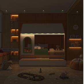 O Conjunto Bicama Reversível New Garden da Casatema é a escolha ideal para quem busca conforto, diversão e funcionalidade para o quarto infantil. Seu design inovador com telhado, janela e grade frontal cria um ambiente lúdico e seguro, estimulando a imaginação das crianças. Com iluminação LED embutida no telhado, a cama proporciona uma atmosfera acolhedora e tranquila, perfeita para momentos de descanso. A bicama também oferece versatilidade, permitindo que o segundo colchão seja facilmente guardado, otimizando o espaço do quarto.