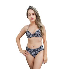 Conjunto biquíni feminino plus size com bojo sustentação estampado P ao 54 - Branco - XG