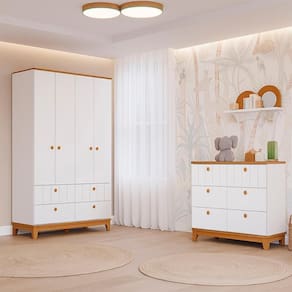 Fabricante: DoceLar | Altura: 218 cm | Largura: 148 cm | Comprimento: 47,3 cm | Altura Embalado: 64,5 | Largura Embalado: 49 | Comprimento Embalado: 211,5 | Peso do Produto: 174 kg | Peso do Produto Embalado: 174 | Material: MDF | Estado de Origem: SP | Dimensões do artigo (item_dimensions): 218 x 148 x 47,3 cm | Modelo: Conjunto Roupeiro e Cômoda Biscoito | Garantia em Meses: 03 meses de garantia para de fabricação | Tonalidade: Branco | Código INMETRO: Não se aplica | Código ANVISA: Não se aplica | Baterias são necessárias? (batteries_required): Não | Certificação de teste externa (external_testing_certification): Não aplicável | Código da Homologação ANATEL: Não se aplica | Código MAPA: Não se aplica | Componentes incluídos (included_components): cômoda, roupeiro e manual de montagem | Exige montagem (is_assembly_required): Sim | Is Fragile (is_fragile): Sim | da peça (part_number): 28230 | do modelo (model_number): 28230 | de caixas (number_of_boxes): 6 | Palavras-chave de Pesquisa (generic_keyword): cômoda, roupeiro, biscoito, infantil, bebê, quarto | Principais Características do Produto 0 (bullet_point#0): estrutura 100% MDF | Principais Características do Produto 1 (bullet_point#1): possui gavetas com corrediças telescópicas | Principais Características do Produto 2 (bullet_point#2): roupeiro suporta até 40 kg e cômoda suporta até 30 kg | Quantidade de itens (number_of_items): 1 | É kit de : Sim | Inclui manual de montagem: Sim | Tamanho da cama: N/A | Fonte do produto: | Condição do item: | Idade: N/A | Tipo de cama: N/A | É kit: Sim | Quantidade de mudos: 0 | Estilo: Moderno Cor: Branco Acetinado/Nature