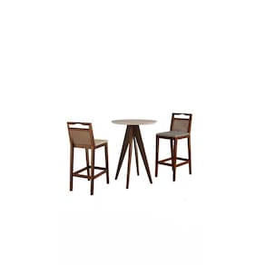 O Conjunto de Bistrô é o móvel ideal para tomar um café ou um happy hour com os amigos, excelente para quem possui pouco espaço, pois é um móvel confortável e compacto. Produzido em madeira maciça é um móvel bonito e resistente. Acompanha um bistrô e duas banquetas.