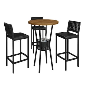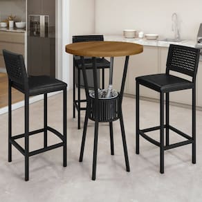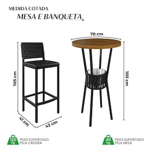 Este elegante conjunto bistrô bar é composto por uma mesa com um balde removível para bebidas, perfeito para manter suas bebidas refrescadas. Inclui três banquetas confortáveis, tornando-o ideal para reuniões sociais ou momentos de descontração. Seu design funcional e sofisticado garante um ambiente acolhedor e prático. Medida da Mesa (A x L x P): 105 cm x 70 cm x 70 cm Peso da Mesa: 9,5 kg Mesa suporta até: 40 kg Acabamento da Cadeira/Banco: Pintura Texturizada Acabamento da Mesa: Pintura Texturizada Almofada do assento: Fixa Ambiente Principal: Jardim e Varanda Cadeira/Banco estofada: Somente Assento Estofado Cadeira/Banco suporta até: 120 kg Complexidade da Montagem: Baixa: pode ser montado por uma pessoa sozinha Cor do Produto: Preto/Preto Galaxy Escala de Brilho: Fosco Espessura do Tampo: 40 mm Estrutura do Assento: Assento em MDF de 12mm , epuma D-23 c/ couríssimo galaxy. Itens Inclusos: 1 Mesa, 3 Banquetas , Kit Ferragens e Manual de Montagem. Linha ou Coleção: Madri Material da Base da Mesa: Aço Material da Estrutura da Cadeira: Aço Material do Tampo: Madeira Maciça Medida da Cadeira/Banco (A x L x P): 105 cm x 42 cm x 41 cm Medida do Tampo (L x C x E): 70 cm x 70 cm 4 cm Necessita Montagem: Sim Peso da Cadeira/Banco: 7,4 kg Possui Apoio Para os Pés: Sim Quantidade de Lugares: 03 Recomendações de Uso, Manutenção e Limpeza: Usar um pano de tecido macio e seco, evitar detergentes, alvejantes e produtos químicos de limpeza; no tampo usar tecido macio levemente umedecido. Sistema de Montagem: Parafusos Tipo de Madeira Maciça do Tampo: Eucalipto Marca: PAONANDA DECOR