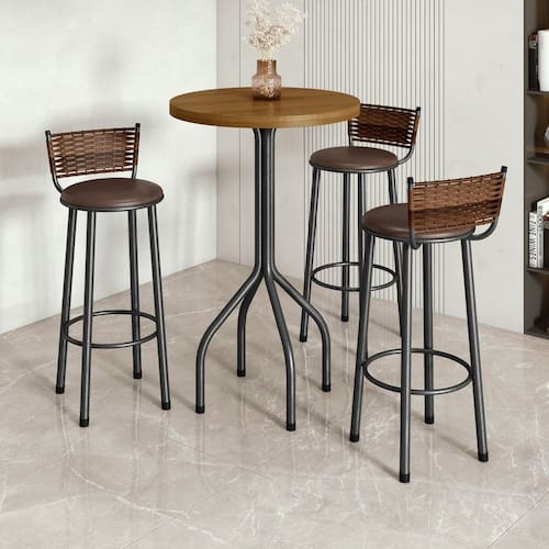 Este elegante conjunto bistrô inclui 3 banquetas e uma mesa com tampo ripado, destacando-se pelo design moderno e sofisticado. As banquetas proporcionam conforto e estilo, enquanto o tampo ripado da mesa em madeira maciça confere robustez e um charme único. Ideal para pequenos espaços, varandas ou áreas gourmet, este conjunto combina funcionalidade e estética, criando um ambiente acolhedor para momentos de descontração. Medida da Mesa (A x L x P): 105X70X70cm Peso da Mesa: 19,2 kg Mesa suporta até: 10 kg Acabamento da Cadeira/Banco: Pintura Texturizada Acabamento da Mesa: Verniz Ambiente Principal: Sala de Jantar Cadeira/Banco estofada: Somente Assento Estofado Cadeira/Banco suporta até: 120 kg Complexidade da Montagem: Baixa: pode ser montado por uma pessoa sozinha Cor: Prata/Marrom Cor do Produto: Prata/Marrom Cor Secundária: Marrom De Canto (Canto Alemão): Não Escala de Brilho: Semi-Fosco Espessura do Tampo: 40 mm Estrutura do Assento: MDP de 15 mm, espuma, courino. Formato do Tampo: Redondo Itens Inclusos: 1 Mesa, 3 Banquetas, Manual de montagem e Kit ferragens. Manual de Montagem e Instalação: https://product-hub-prd.madeiramadeira.com.br/937885/documents/72790b9a-62a1-4b39-8597-394b08e760f02285521352817250430750795.pdf Material da Base da Mesa: Alumínio Material da Estrutura da Cadeira: Aço Material do Tampo: Madeira Maciça Medida da Cadeira/Banco (A x L x P): 97X38X44cm Medida do Tampo (L x C x E): 70x70x4cm Mesa Extensível: Não Necessita Montagem: Sim Origem do Produto: Nacional Peso da Cadeira/Banco: 3,8 kg Possui Apoio Para os Pés: Sim Quantidade de Lugares: 03 Recomendações de Uso, Manutenção e Limpeza: Limpar com pano levemente umedecido, não utilizar solventes nem produtos de limpeza. Sistema de Montagem: Parafusos Tipo de Madeira Maciça do Tampo: Eucalipto Marca: Tubulares Paonanda