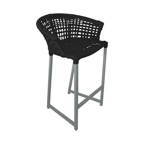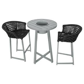 Conjunto Bistrô Champanheira Cinza Tampo Ripado E 2 Banquetas Reis Corda Náutica Preta - Cor: Preto