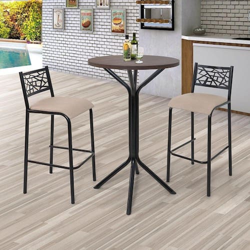 O conjunto Bistrô Dani possui um designer elegante, que vai deixar a sua cozinha ainda mais bonita, traz modernidade e conforto ao ambiente, perfeito para Salas de jantar, cozinhas, bares e etc. Suas 02 Banqueta possuem assento anatômico e sistema de fixação com porca agarras, que proporcionam maior conforto e comodidade. Além disso suas ponteiras de proteção interna nos pés, que garante maior proteção contra riscos e ferrugem. Acabamento da Cadeira/Banco: Cromado Acabamento da Mesa: Pintura Epóxi Almofada do assento: Fixa Altura do Conjunto: 100 Ambiente Principal: Cozinha Cadeira/Banco estofada: Sim Cadeira/Banco suporta até: 100 Complexidade da Montagem: Baixa: pode ser montado por uma pessoa sozinha Cor: Preto fosco/ Linho Bege Cor do Produto: Preto Fosco/ Linho Bege Enchimento do Assento: Espuma D-12 Escala de Brilho: Fosco Espessura do Tampo: 30 Estrutura do Assento: Estrutura de madeira pinus compensados, porca agarra metálicas, espuma e courino sintético. Estrutura do Encosto: Aço Itens Inclusos: 2 Banquetas, 1 Mesa, Kit Ferragens e Manual de Montagem Manual de Montagem e Instalação: https://cdn2.madeiramadeira.com.br/atributo/moveis-ciplafe/1279381-176-s1007.pdf Material da Base da Mesa: Aço Material da Estrutura da Cadeira: Aço Medida da Base (A x L x P): 100,5x65x65cm Medida da Cadeira/Banco (A x L x P): 93,5x38x44cm Medida da Mesa (A x L x P): 101,3x90x90cm Medida do Tampo (L x C x E): 65x65x0,8cm Mesa suporta até: 10 Necessita Montagem: Sim Origem do Produto: Nacional Peso da Cadeira/Banco: 3.71 Peso da Mesa: 9.640000000000001 Possui Apoio para Braços: Não Possui Apoio Para os Pés: Sim Possui Suporte Giratório: Não Recomendações de Uso, Manutenção e Limpeza: Limpar com pano levemente umedecido. Não usar produtos abrasivos que possam danificar a superfície do móvel. Revestimento da Cadeira/Banco: Couro Ecológico Sistema de Montagem: Parafuso