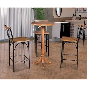 Tipo: Conjunto Modelo do Bistrô: Redondo Modelo da Banqueta: Paris Cor do Bistrô: Castanho Cor da Banqueta: Castanho Cor da Base da Banqueta: Preto