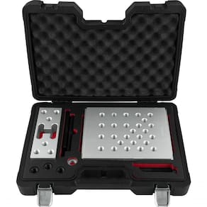 Conteúdo da embalagem: 1 Jogo composto por maleta plástica com 29 peças, sendo: 2 placas base, 2 placas laterais da base, 5 hastes, 1 parafuso sextavado, 3 porcas, 6 parafusos allen, 4 arruelas grandes, 6 arruelas pequenas.