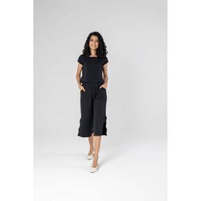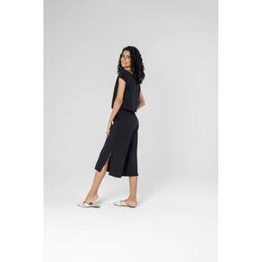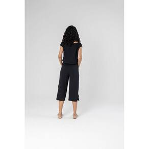 Além disso, complementando a blusa, a nossa calça pantacourt é uma escolha audaciosa. Com um corte amplo e moderno, ela é um símbolo de estilo e conforto. A fenda lateral adiciona um toque de feminilidade e movimento à peça, tornando-a ideal para ocasiões especiais. A calça pantacourt é versátil e se adapta a várias combinações, proporcionando conforto e elegância em igual medida.