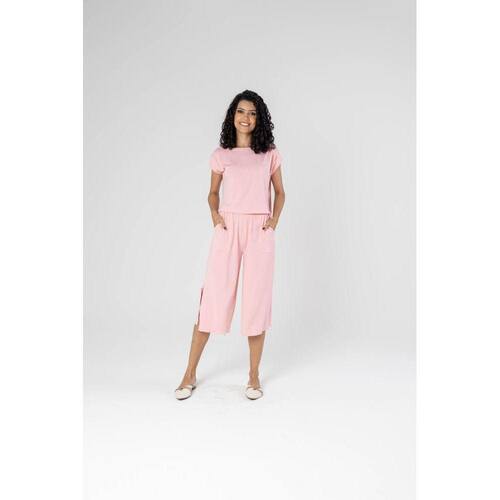 Além disso, complementando a blusa, a nossa calça pantacourt é uma escolha audaciosa. Com um corte amplo e moderno, ela é um símbolo de estilo e conforto. A fenda lateral adiciona um toque de feminilidade e movimento à peça, tornando-a ideal para ocasiões especiais. A calça pantacourt é versátil e se adapta a várias combinações, proporcionando conforto e elegância em igual medida.