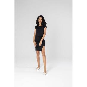 O top cropped deste conjunto apresenta um corte impecável e uma modelagem ajustada ao corpo, realçando suas curvas de maneira sutil e elegante. Com seu comprimento na medida certa, ele revela uma pequena porção de pele, adicionando um toque de sensualidade ao look. A saia do conjunto possui um design refinado com uma fenda na lateral, que confere um ar de sofisticação e movimento aos seus passos. A fenda adiciona um toque de ousadia e permite que você mostre um pouco das suas pernas de maneira discreta e elegante.