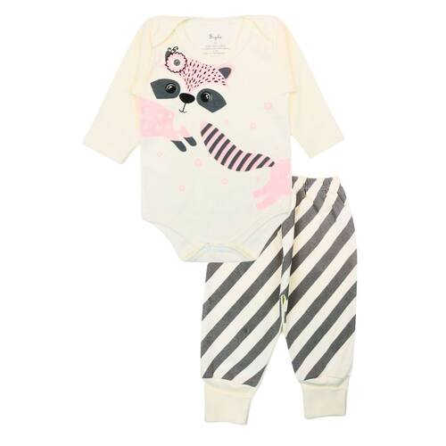 Conjunto Body Bebê Longo Algodão Bege Estampado Menina - Conforto e estilo para sua bebê com a qualidade Larthani em moda infantil