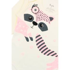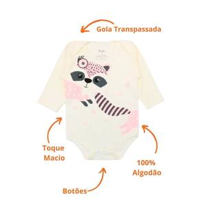 Apresentamos o Conjunto Body Bebê Longo Algodão Bege Estampado Menina.