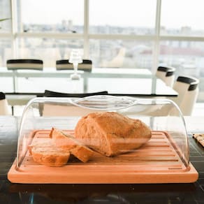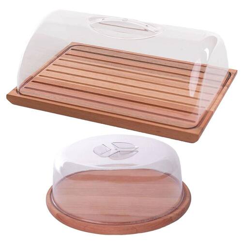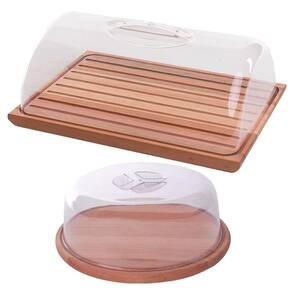 Conjunto Boleira Redonda e Migalheira de Pão de Madeira com Tampa Acrílica Essence.