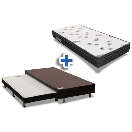 Conjunto 3 em 1 (Cama Box + Cama Auxiliar Courino Nero Black Ortobom) + (Colchão Ortobom D45 Light Saúde) - Solteiro 88x188