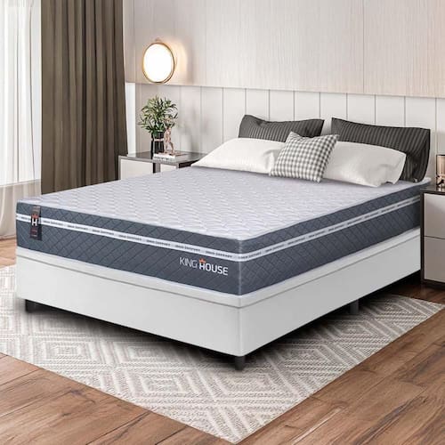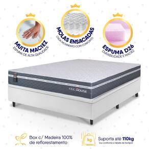 Conjunto Box Baú Branco Cairo Cinza Molas Ensacadas Casal 138x188x71 - King House