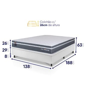 - Altura: 63 cm (colchão) + 8 cm (box) = 71 cm de altura;