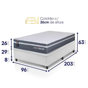 - Altura: 63 cm (colchão) + 8 cm (box) = 71 cm de altura;