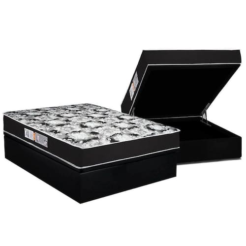 Conjunto Box Baú Casal: Colchão Espuma Luckspuma D45 Gran Luck Pro + Base CRC Suede Black(138x188)