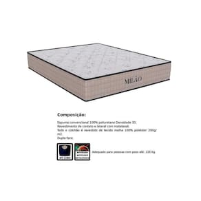 Dimensões(Cm): Comprimento(Profundidade): 188cm x Largura: 138cm x Altura: 24cm Tecido com Tratamento do Colchão - AntiÁcaro e AntiFungo Bordado do Revestimento do Colchão - Contínuo Forração Revestimento do Colchão - Poliéster Modo de Utilização do Colchão - Double Side Densidade da Espuma do Colchão - D33 Nível de Firmeza do Colchão - Firme Peso Máximo Suportado do Colchão - 120 kg Certificação de Qualidade do Colchão - Qualidade Aprovada - INMETRO Nossa Avaliação do Colchão - Qualidade Boa Tempo de Garantia do Colchão - 12 meses
