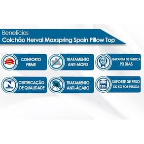 Colchão Casal Molas Maxspring Spain Pillow Top (138x188x27) - Herval