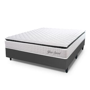 Conjunto Box Baú Casal Hellen Colchão com Molas Ensacadas Yaris Pillow Top 138x188x61cm - Cinza
