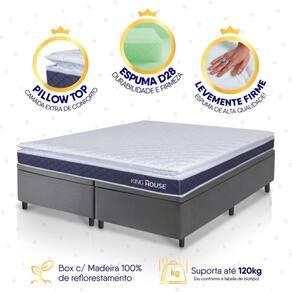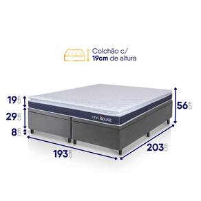 - Altura: 56 cm (colchão) + 8 cm (box) = 64 cm de altura;