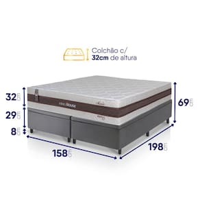 - Altura: 69 cm (colchão) + 8 cm (box) = 77 cm de altura;