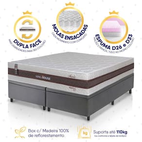 Feito com os mais nobres materiais em sua composição, ele conta com espuma D26 E D33 e molas ensacadas. Por ser mais macio, o colchão de molas ensacadas individualmente traz benefícios e ajuda no alinhamento da coluna. O colchão Mali acomoda melhor o contorno do corpo, dispondo de forma correta quadris e ombros, expulsando as dores e problemas de coluna.Não perca mais tempo e garanta já o seu Conjunto Box Baú Mali!