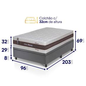 - Altura: 69 cm (colchão) + 8 cm (box) = 77 cm de altura;