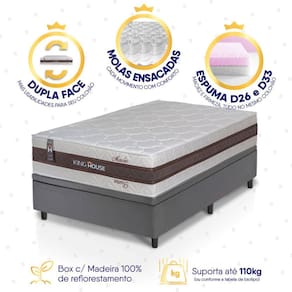 Eucalipto (Box), Espuma D26 e D33 (Colchão), Molas EnsacadasVendido e entregue por KING HOUSE